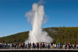 The park is known for its wildlife, its subalpine forest, and its many geothermal features, especially a geyser known as Old Faithful. First observed in 1870, its eruptions can shoot 3,700 to 8,400 gallons of boiling water to a height of 106 to 185 feet, lasting from 1½ to 5 minutes. The average height of an eruption is 145 feet.