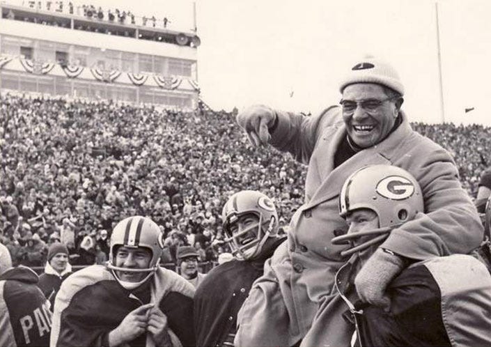 Sure enough, in just 1 season, having gotten rid of the unserious, and having promoted the dedicated, he took the Packers to to 7-5. In 1960, they went 8-4, and won the Western Division, but lost the NFL Championship Game to the Philadelphia Eagles. It would be the only postseason game Lombardi ever lost.